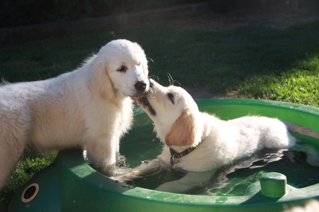 Alice und Luna mit fast 4 Monaten - Alice wiegt nun 16 kg, Luna 14 kg.
