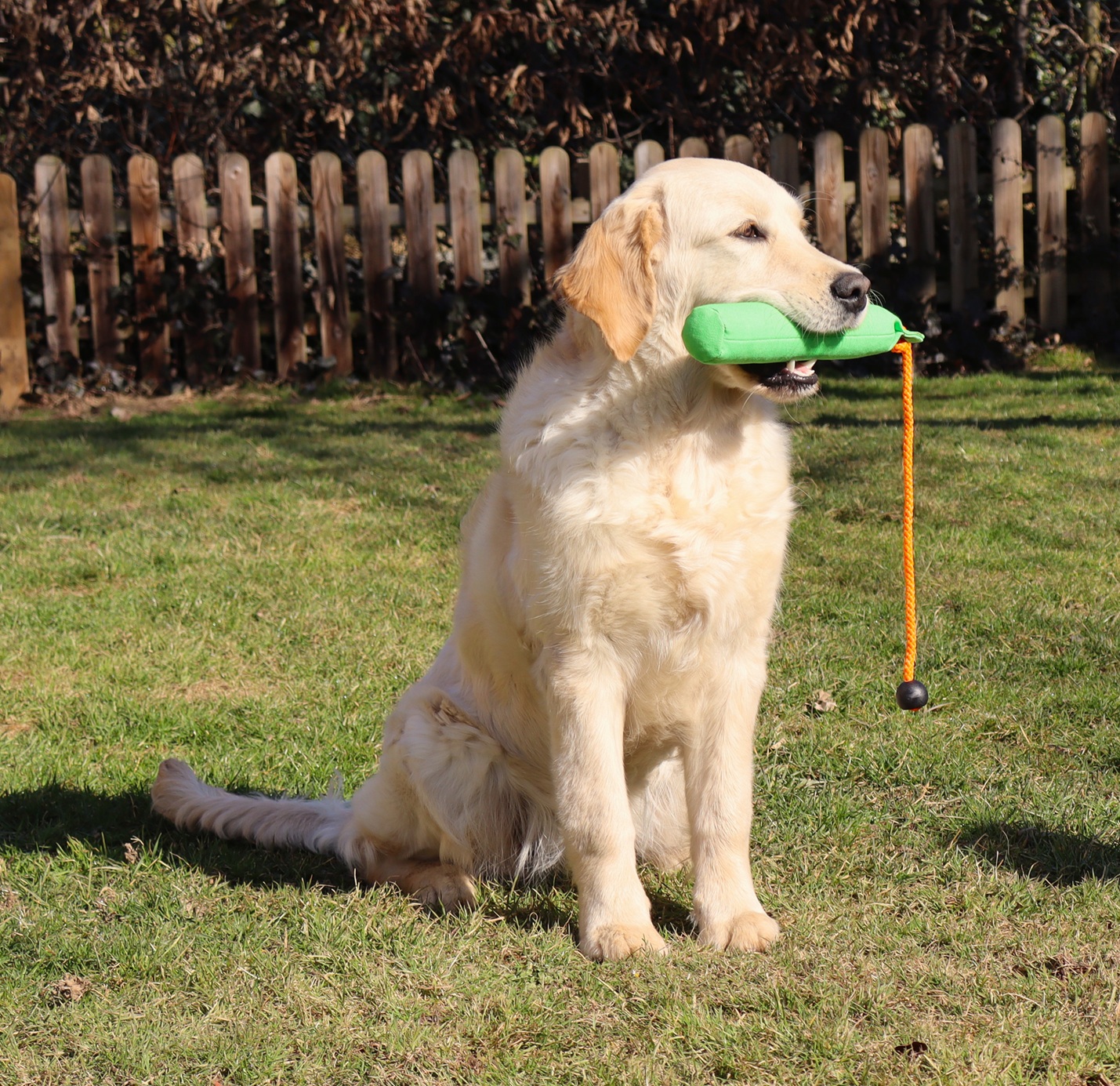 Wir beginnen auch schon langsam mit der Dummyarbeit - später als bei unseren bisherigen Hündinnen.