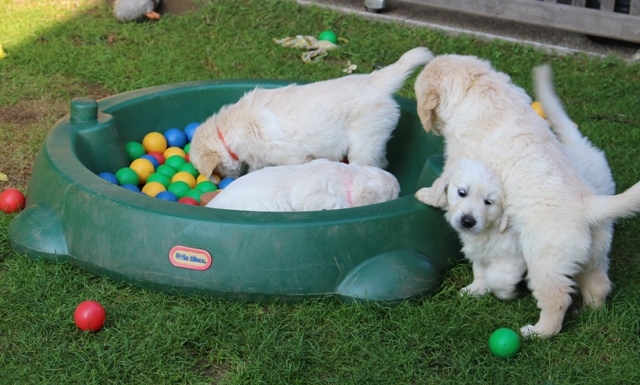 Im Bällebad haben sie auch schon viel Spaß - da noch ohne Wasser.