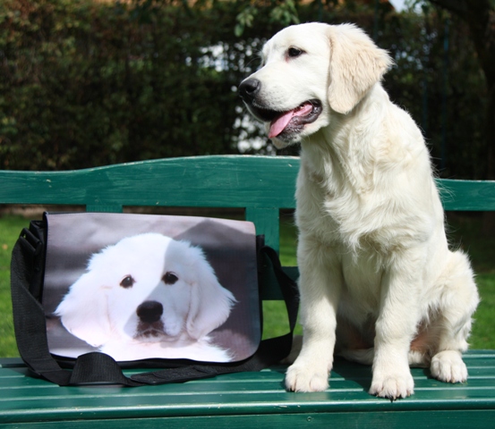 Alice hat ihre eigene Tasche - erhältlich in drei Größen beim Franziskus-Tierheim Rosental - die bekommen einen Teil vom Kaufpreis als Spende. Das hier ist die größte Tasche.
